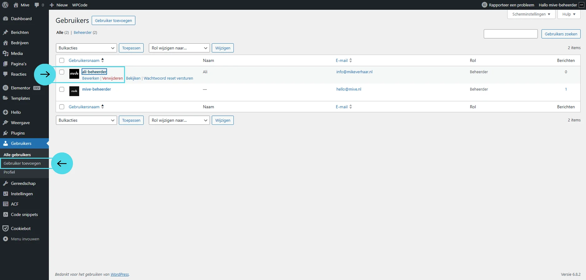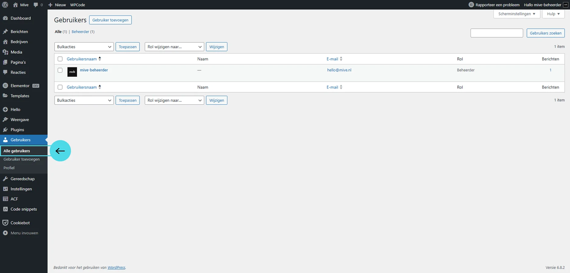 De gebruiker verschijnt nu in de lijst onder Gebruikers → Alle gebruikers.