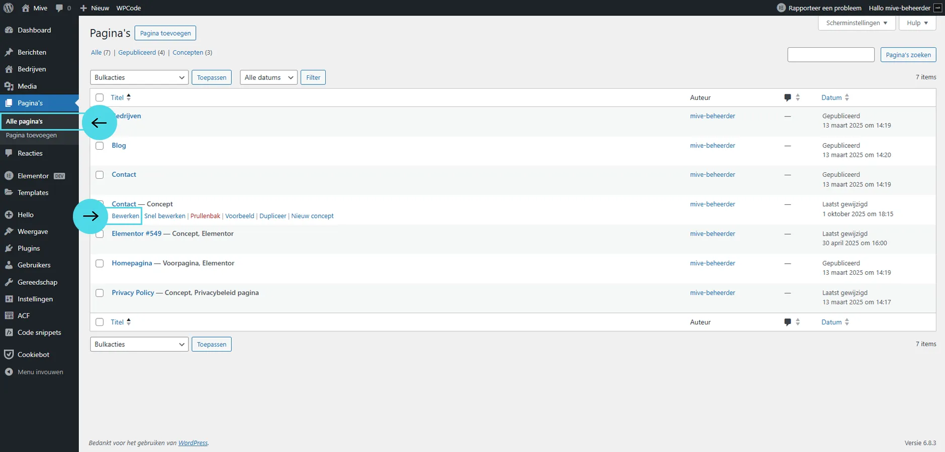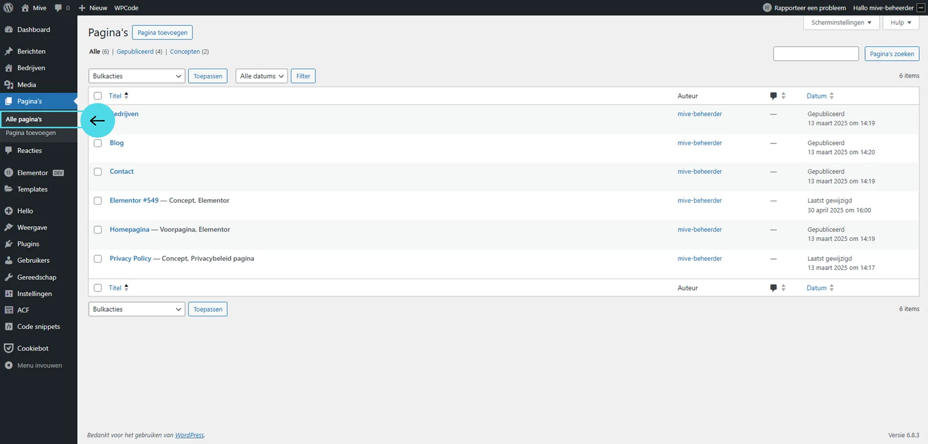 1. Ga je naar Pagina’s → Alle pagina’s.